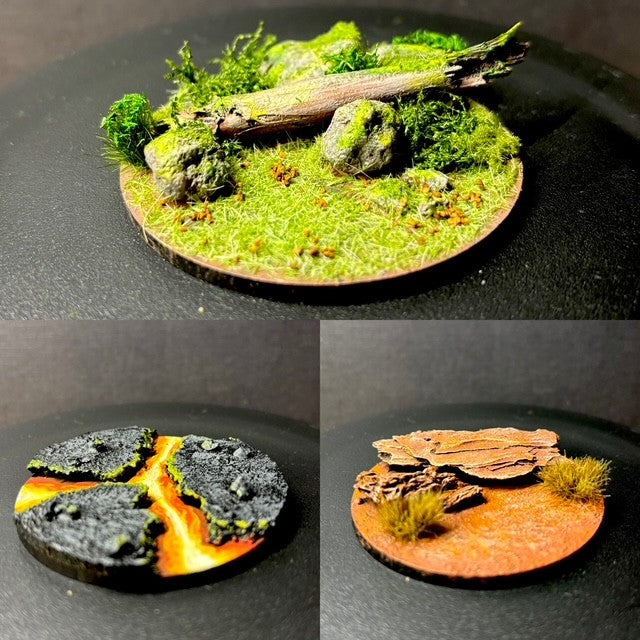 - Add texture and realism with scenic bases, including grass, stone, lava, dungeon tiles, and more.